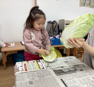 1枚ずつ白菜をはがす経験も新鮮だったようです😊