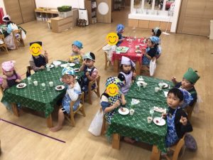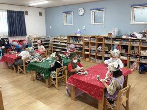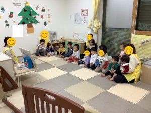 1つの保育室に集合して、みんなで賑やかにクリスマスを過ごしました☆