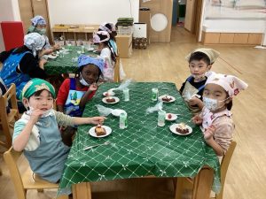 おやつでは、ケーキを自分でデコレーション✨