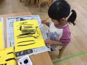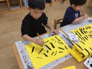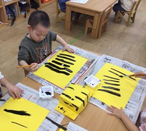 おにのパンツを思い浮かべながら、黄色の画用紙に模様を描きました✨