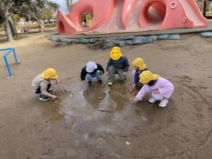 大きな水たまりを見つけて皆で楽しむ姿も見られましたよ☺️✨